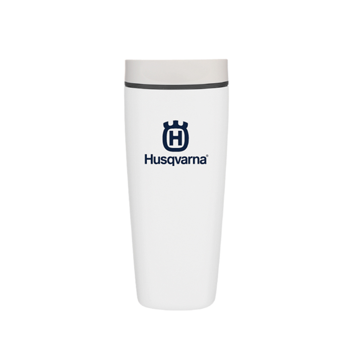 White Owala SmoothSip Slider 20 oz thermal mug is designed for smooth, spill-resistant sipping on the go. Made from durable 18/8 stainless steel with double wall construction and vacuum insulation, it keeps beverages hot or cold for hours. It features a threaded lid with a sliding closure and sip opening for added control and convenience. Finished with a durable powder coated exterior for a stylish, comfortable grip.